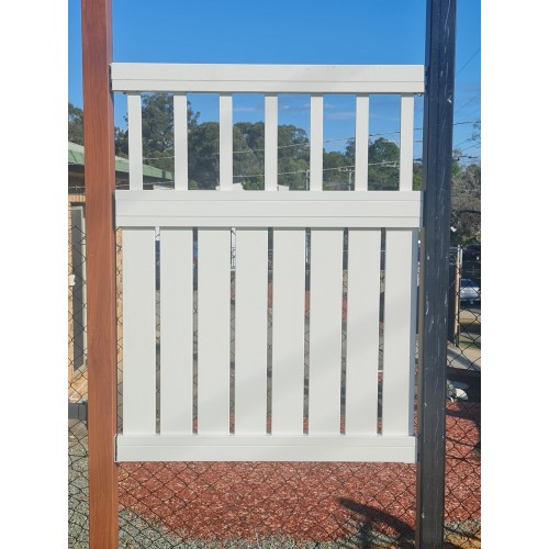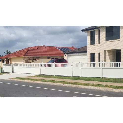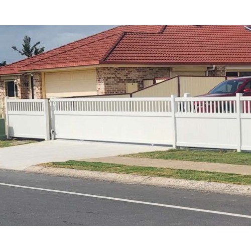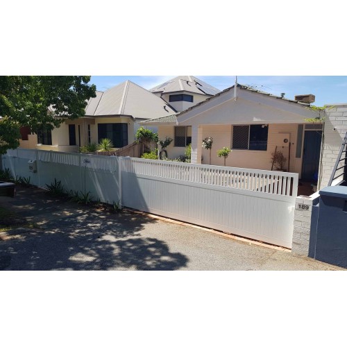 The listed price is an estimate of vertical sliding gate in WHITE and an example of 4200mm wide x 1500mm high with 40mm gaps between the bottom slats would be $1390 for the sliding gate which is $221 per square metre. Supplied cut to size then you DIY. We are custom cutters so we do any size and this size quoted here is the example.
