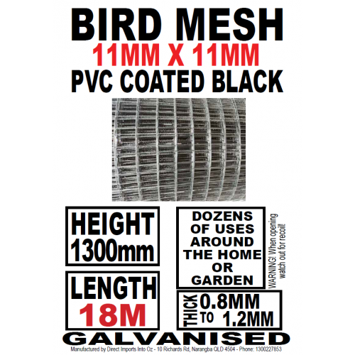 Tags: Bird Mesh – High END Black & PVC Coated - 18mx1.3m 11x11mm Holes - PICK UP