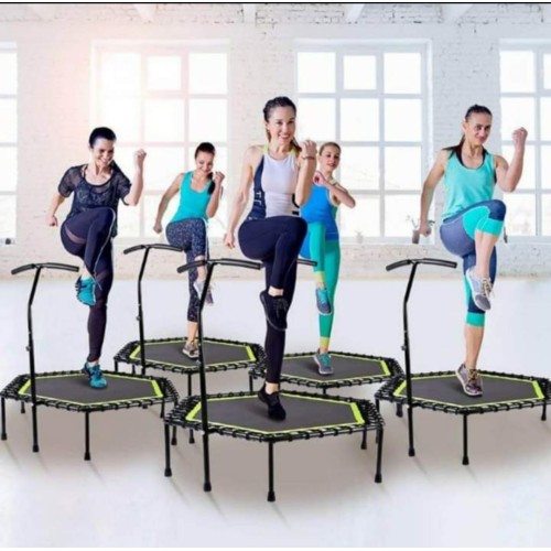 Get a full-body workout in a safe and fun way with Our Fitness Trampoline Trainer!