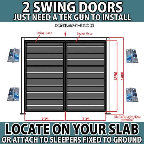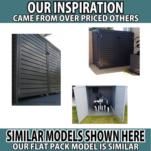 The example pricing is per Square Metre as a custom sized enclosure to this size with 16mm gaps between slats and in black colour and supplied as a DIY kit of: 1400h x 3600w x 1400d. 4 x front doors abs 2 x roofs and around $3577 total or $256 per sqm of slats.