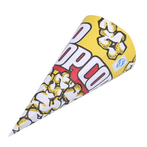 Size of the CONE SHAPED BAGS are 21cm x 16cm. It folds open to a curved cone shape allowing ease of holding in someones hand.