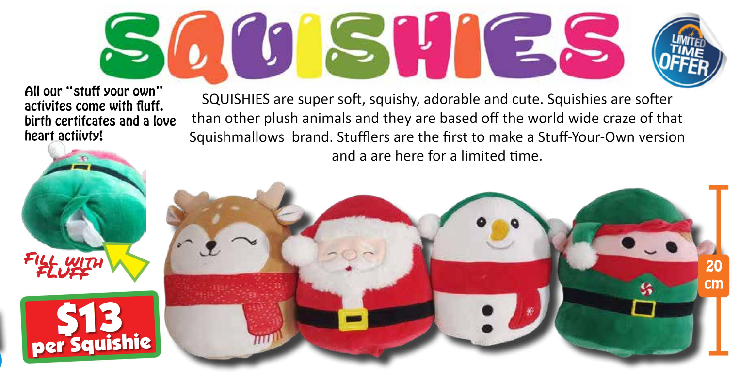 They are super soft, squishy, adorable and cute. Squishies are softer than other plush animals and they are a world wide craze. Stufflers are the first to make a stuff your own version.