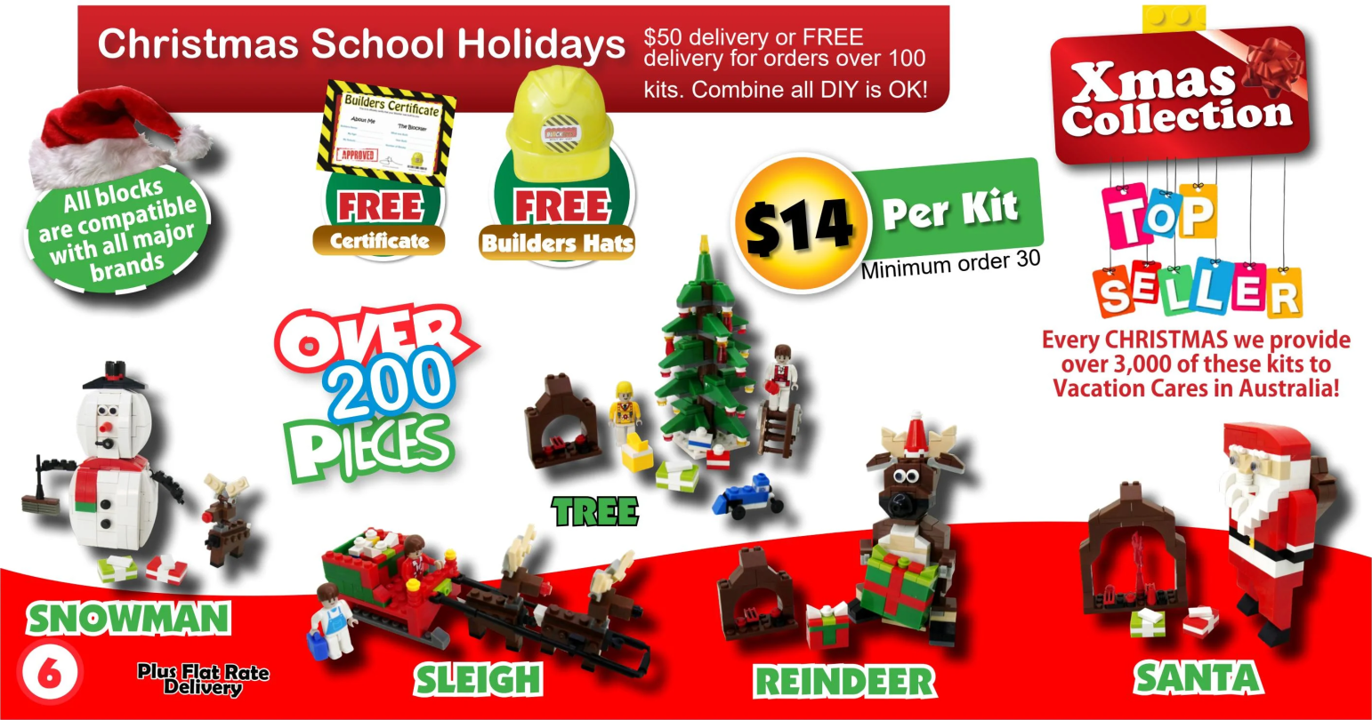 Children get to pick from the random Christmas themed block sets that contain 200 pieces. Designs such as Reindeer, Snowmen and Santa