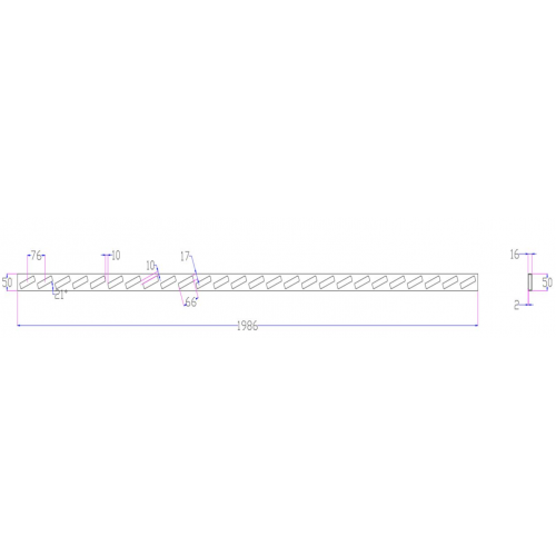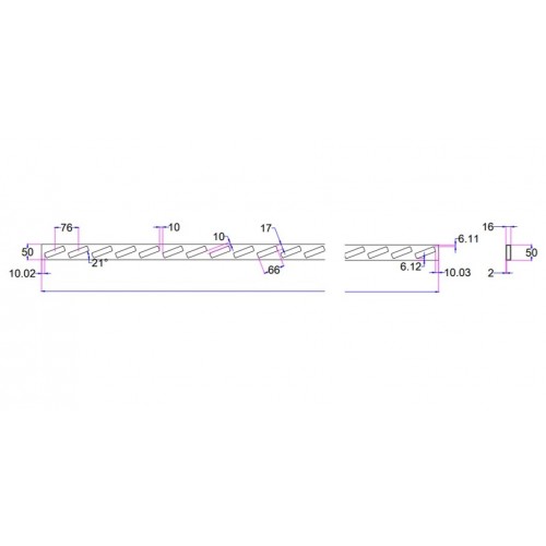 The holes in the track are laser cut to suit perfectly the 65mm x 16mm aluminium slats we sell.