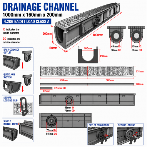 - Weight: 4.2kg (channel + 2 grates)