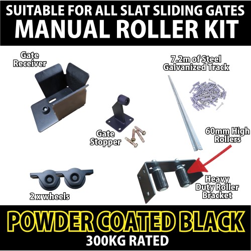 If you BUY my manual roller kit the height of the wheels and track, is 70mm off the concrete to the underside of the gate so allow for that when determining your gate height.
